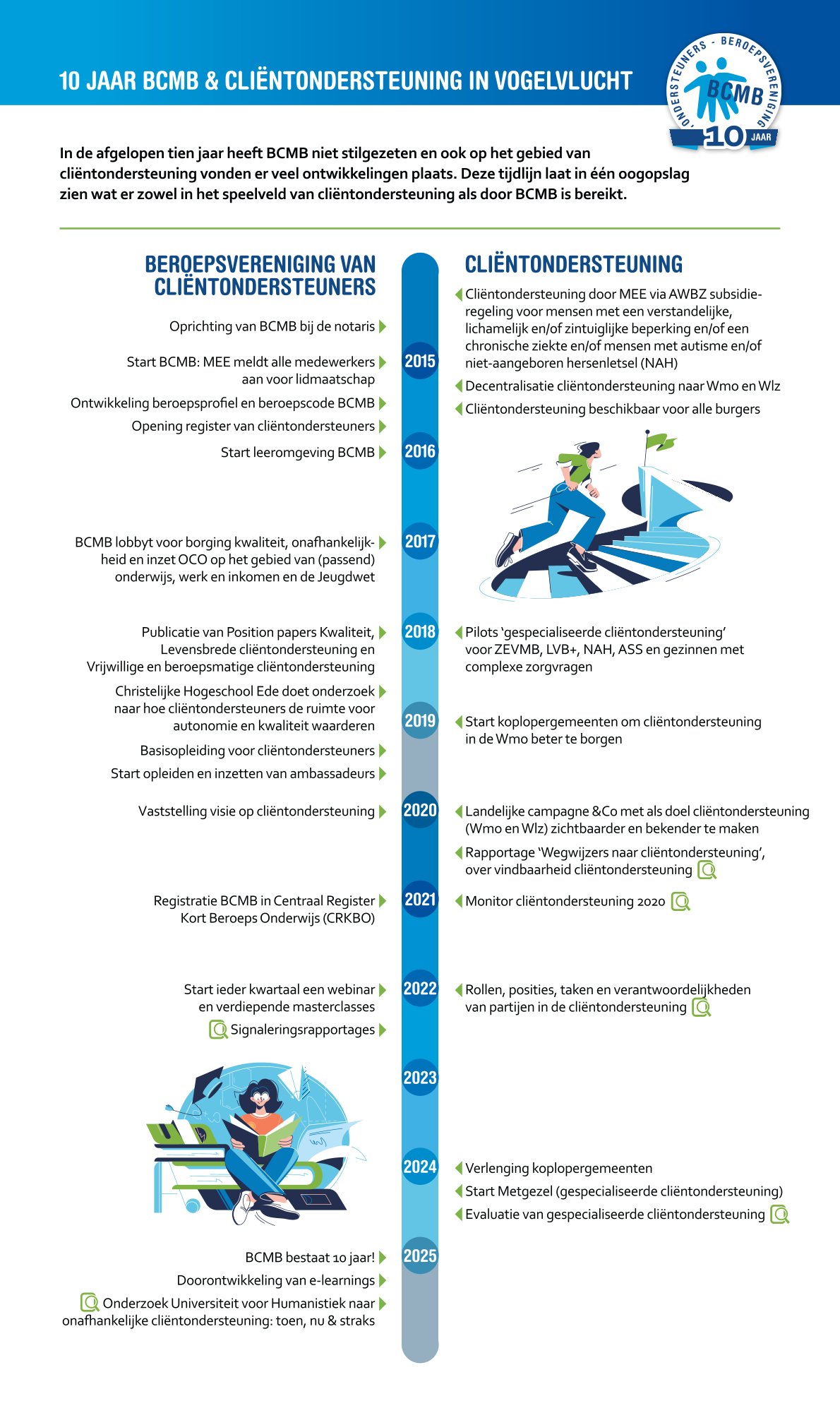 Download hier de tijdlijn BCMB en cliëntondersteuning 2015 - 2025